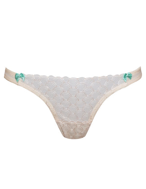 Stunning embroidered ivory mesh creates the delicate Coquiille Coquille peep thong. The ultra-flattering silhouette elongates the legs whilst offering a playful and cheeky derriere, making the peep thong perfect to wear both day or night.