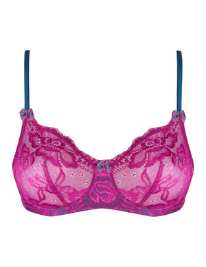 With stunning fuchsia lace and teal satin combining to dramatic effect in an iconic Mimi colour clash, the Fuchsia Fever comfort bra is effortlessly fun yet truly feminine. Subtle yet sculpting lift creates an enviable décolletage that works both day and night.